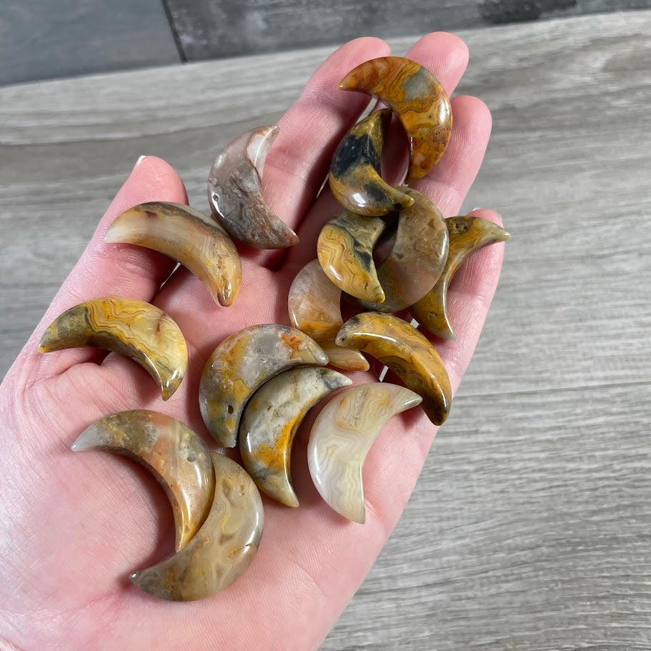 Assorted Gemstone Moons – 1 Inch Crescent Moon Carvings