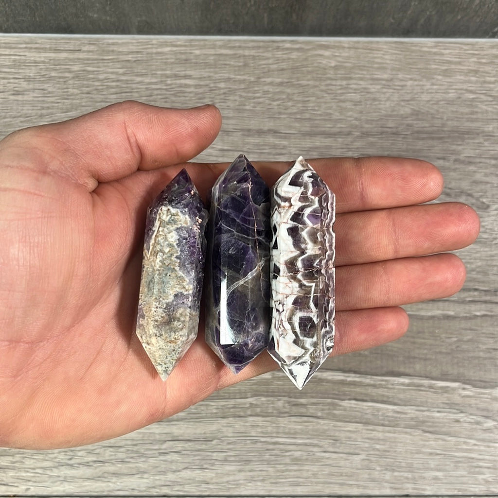 Add high vibrational energy tools to your inventory with these wholesale Double Terminated Gemstone Wands, sold by the ounce. Each wand features a polished finish with dual terminations and a multi-faceted Vogel style, making them perfect for energy healing, Reiki practices, spiritual work, or metaphysical retail displays. Popular among crystal collectors and holistic wellness seekers, these gemstone wands are ideal for crystal grids, chakra alignment, or as thoughtful gifts.