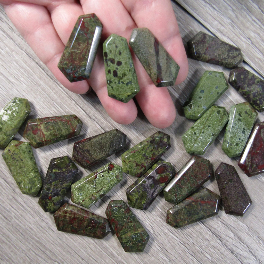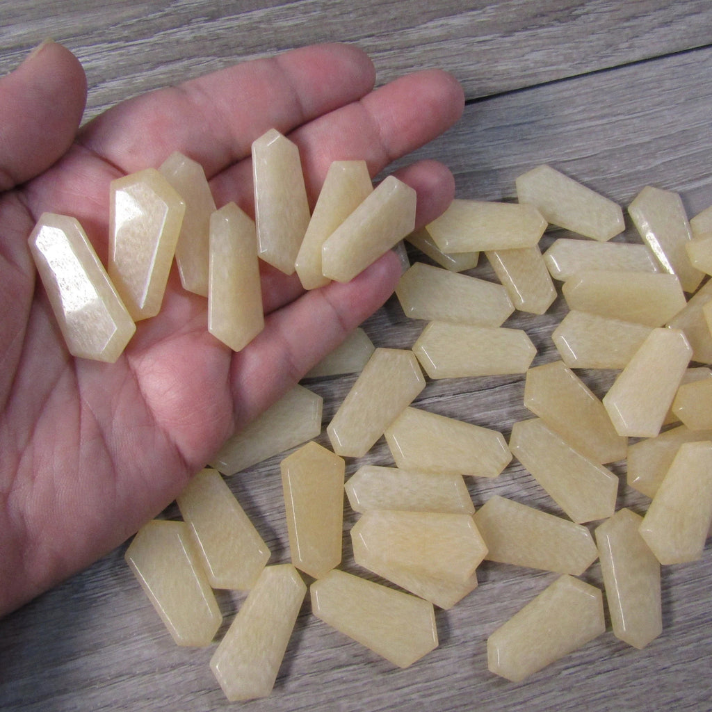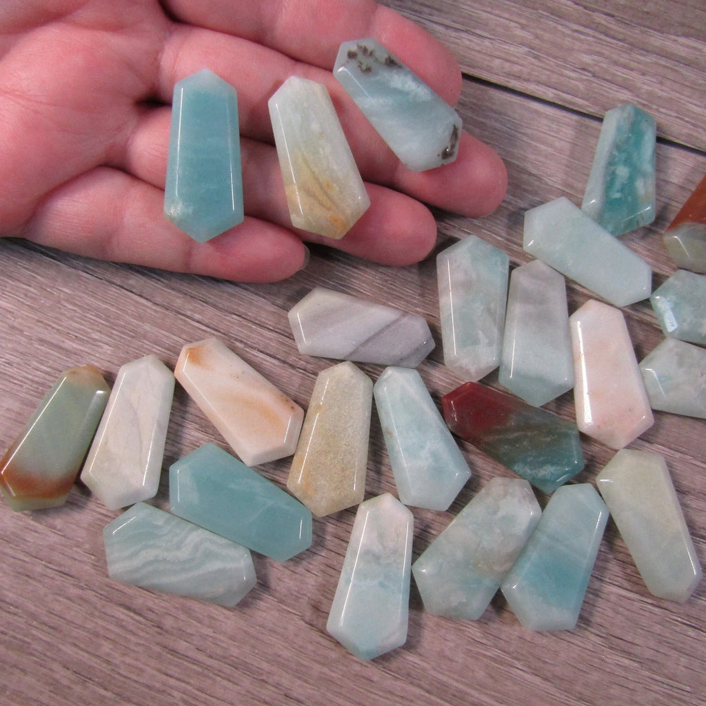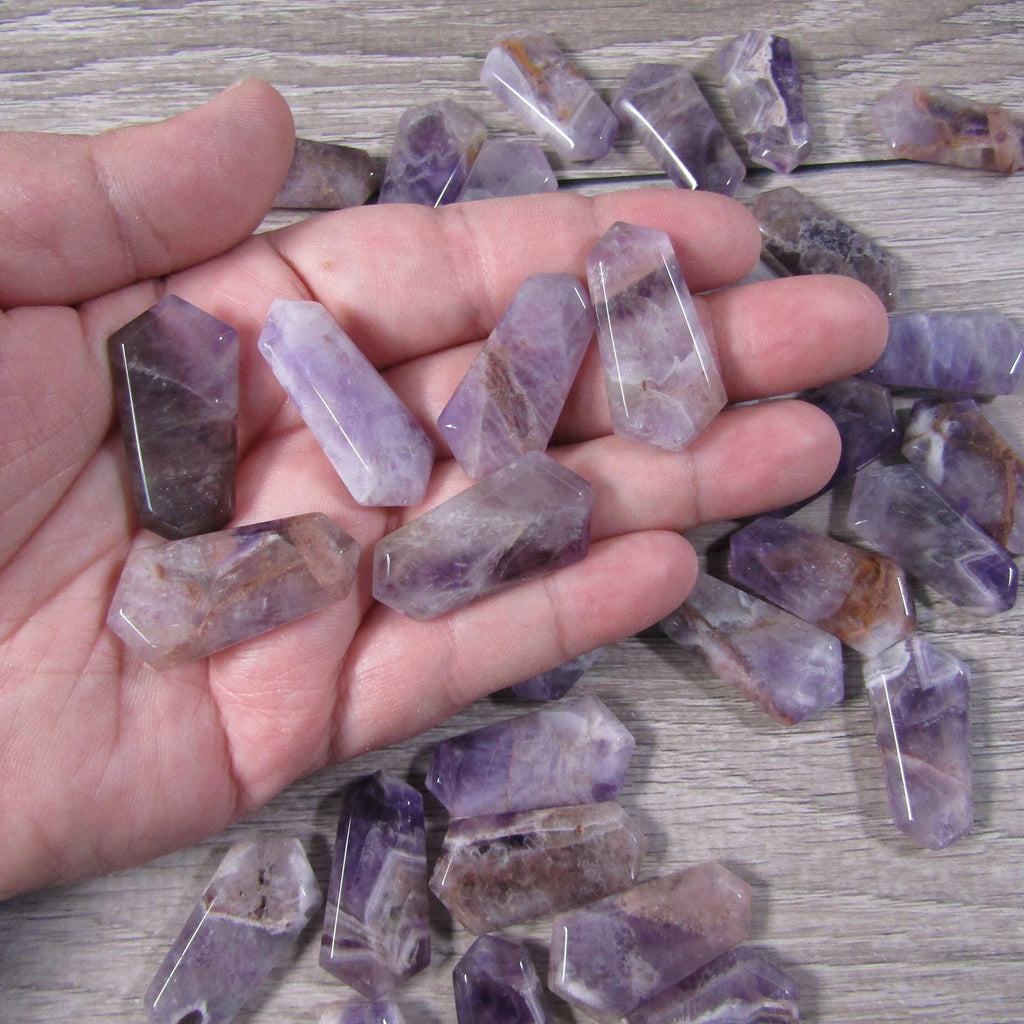 These double-terminated gemstone flat mini wands measure approximately 1 inch and are ideal for crystal healing, energy work, and crafting. Each wand features a polished, symmetrical point on both ends, allowing for balanced energy flow. Perfect for chakra alignment, gridding, and spiritual practices, these mini wands are available in a variety of natural gemstones. Sold in bulk for wholesale buyers, they are a great addition to any metaphysical or holistic shop.