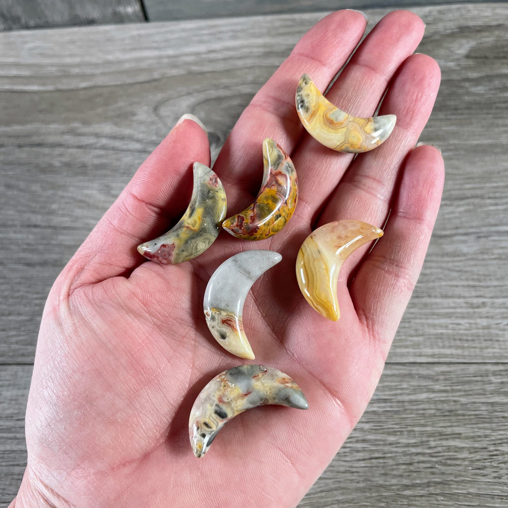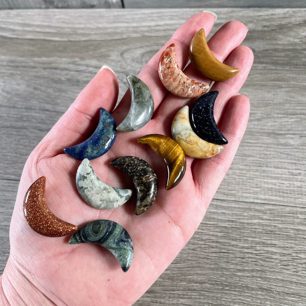 Gemstone Moons Assorted – 1 Inch Crescent Moon Carvings