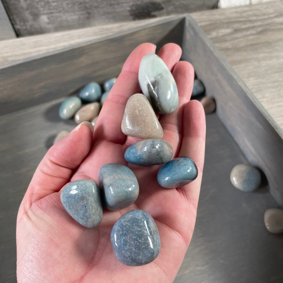 Bring the calming and spiritually uplifting energy of Trollite into your shop with our wholesale Tumbled Trollite sold by the 1-pound lot. Each stone showcases a beautiful mix of deep blues, greens, and earthy tones, making it a standout choice for collectors, healers, and crystal enthusiasts. Trollite is prized in the metaphysical community for promoting emotional balance, deep meditation, and spiritual connection. These polished tumbled stones are perfect for resale in crystal boutiques, metaphysical stores, gift shops, or as part of crystal healing sets.